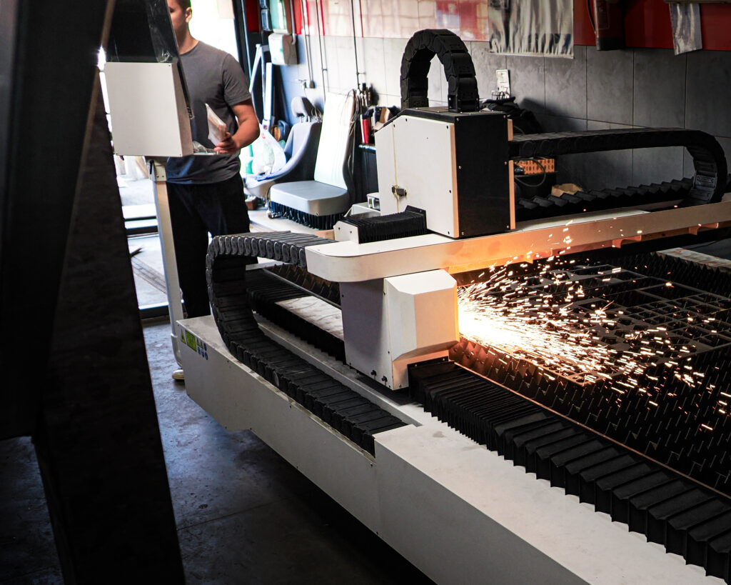 Wykonujemy cięcie laserowe z najwyższą precyzją, idealne do skomplikowanych kształtów i detali. Laser gwarantuje czyste krawędzie, szybkie tempo pracy i minimalne straty materiału. Realizujemy zarówno prototypy, jak i duże serie produkcyjne.